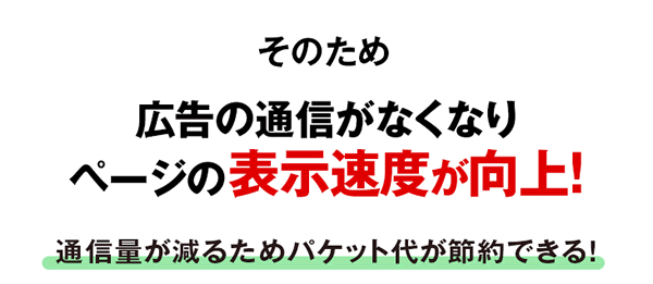 勝手な”おすすめ”などの広告をブロックすることで読み込まれる広告が少なくなり、通信量が節約できます。通信量を好きなものだけに使い、広告などに邪魔されない快適なブラウジングをお楽しみください。