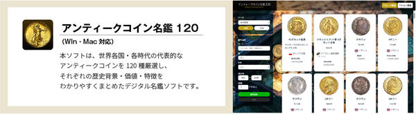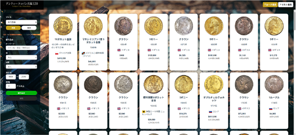 実際のアンティークコインのリアル画像を多数掲載。